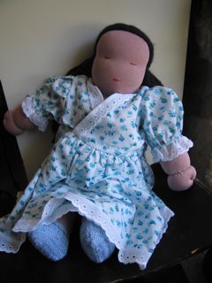 The dolls are 14 inches long, made of cloth, and come in a variety of skin tones and hair color including cream (with black, brown or blond hair), light brown, dark brown, or black (with black hair). This pregnant mother doll and baby doll are used to illustrate normal childbirth, bonding and breast-feeding. The baby is delivered with the umbilical cord and the placenta attached.